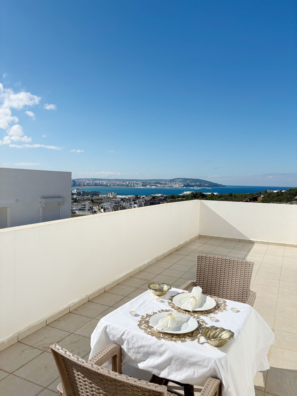 Step into Villa Perianthe, a serene whitewashed haven perched above the city of Tangier. Inspired by the elegant minimalism of Greek architecture, this tranquil villa welcomes you with sunlit spaces that blend the charm of the Cyclades with the soul of Morocco. ☀️ Wake up to panoramic views of Tangier. Whether you’re sipping mint tea on the terrace or relaxing under the archways with a book, Villa Perianthe offers a peaceful retreat just minutes from the heart of the city.
