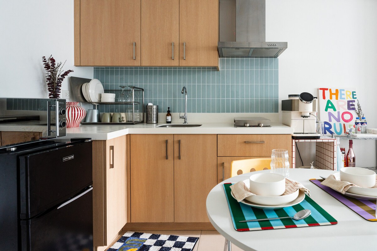 Découvrez le mélange parfait de style, de confort et de commodité dans notre appartement urbain chic, situé à Quezon City. Laissez-nous rendre votre séjour mémorable ! - Smart Entertainment avec télévision 50 pouces, home cinéma, plates-formes de streaming haut de gamme, jeux de société et PS5. - Ustensiles de cuisine et de salle à manger complets. - Chambre confortable avec lit double et linge de maison de haute qualité pour une nuit de sommeil paisible. - Convient au travail avec un espace de travail confortable et une connexion Wi-Fi haut débit jusqu'à 200 Mbps. - Salle de bain avec articles de toilette gratuits.