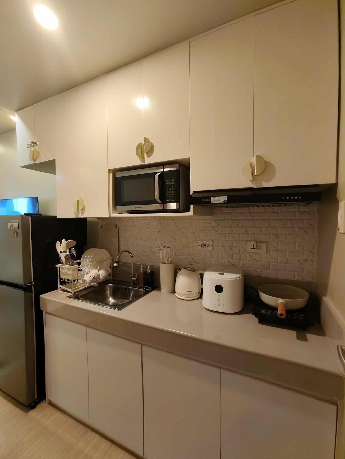 Bienvenue à Shia Staycation ! Une retraite sereine et élégante au sein de Trees Residences. Design minimaliste : espace propre, simple et élégant. Centre de divertissement : télévision connectée 55 pouces avec Netflix, karaoké et une PS4. Éclairage d'ambiance : lumières multicolores pour toutes les ambiances. Lit confortable : lit double de qualité hôtelière pour un sommeil réparateur. Équipements modernes : WiFi haut débit, cuisine entièrement équipée, table d'étude/ordinateur. Conforts de la salle de bain : chauffe-eau avec un dessus de table. Rangement spacieux : armoire spacieuse pour l'organisation.