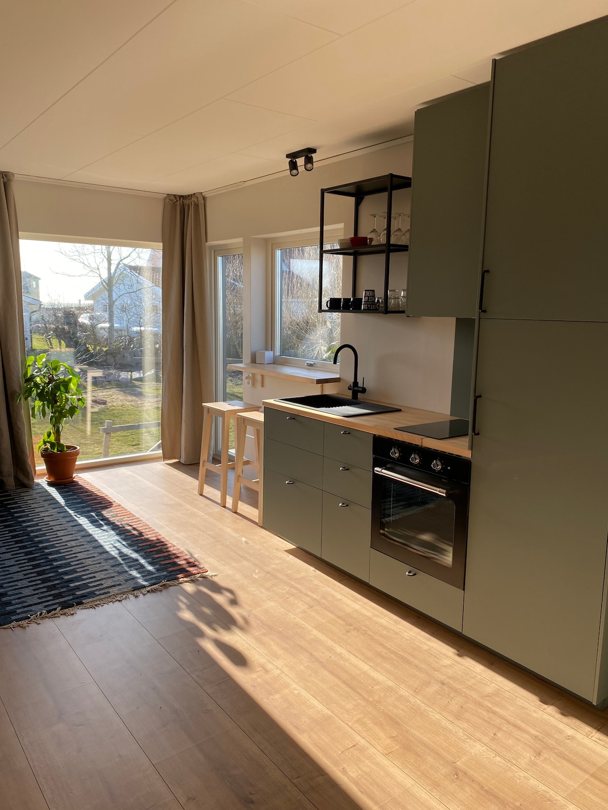 Ici, vous vivez à la campagne, mais près de la ville et de tout ce que Falkenberg a à offrir. La mer, les restaurants, les concerts et bien plus encore que la ville estivale a à offrir. Ou vous pouvez simplement vous détendre et vous promener dans la nature. Le nettoyage et les draps et les serviettes sont inclus dans le prix. Toilettes avec douche et machine à laver. Cuisine entièrement fonctionnelle. Le chauffage, l'eau chaude et le stationnement sont également inclus dans le prix.