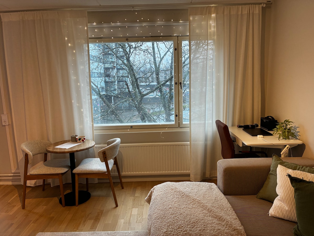 Profitez d'un studio de 30 m² fraîchement rénové dans un emplacement parfait! Les gares ferroviaires et routières, l'épicerie et les pizzerias sont à côté – le centre-ville d'Helsinki et l'aéroport sont à quelques minutes en train. L'appartement dispose d'une télévision OLED 65", d'une PlayStation, d'un bureau réglable, d'un canapé d'angle, d'une connexion Wi-Fi, d'une cafetière, d'un four à micro-ondes et d'un nouveau lit queen size. La cuisine et la salle de bain sont récemment rénovées. La remise des clés se fait sans contact. Le café, les serviettes et les draps sont inclus. Séjour confortable et pratique !