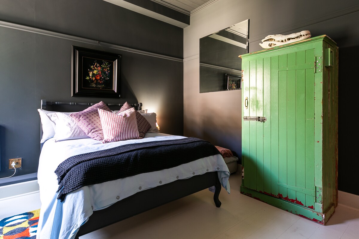 Cette chambre chaleureuse et élégante du STOEP Boutique Hotel à Kalk Bay est une retraite côtière sereine. Doté d'un lit queen size avec des oreillers texturés, d'un coin lecture confortable baigné de lumière naturelle et de finitions en bois terreuses, l'espace allie sans effort le confort au design contemporain. Les accents tissés, l'art moderne et la verdure intérieure luxuriante créent une atmosphère calme et accueillante, parfaite pour se détendre après une journée d'exploration du charmant village balnéaire de Kalk Bay.
