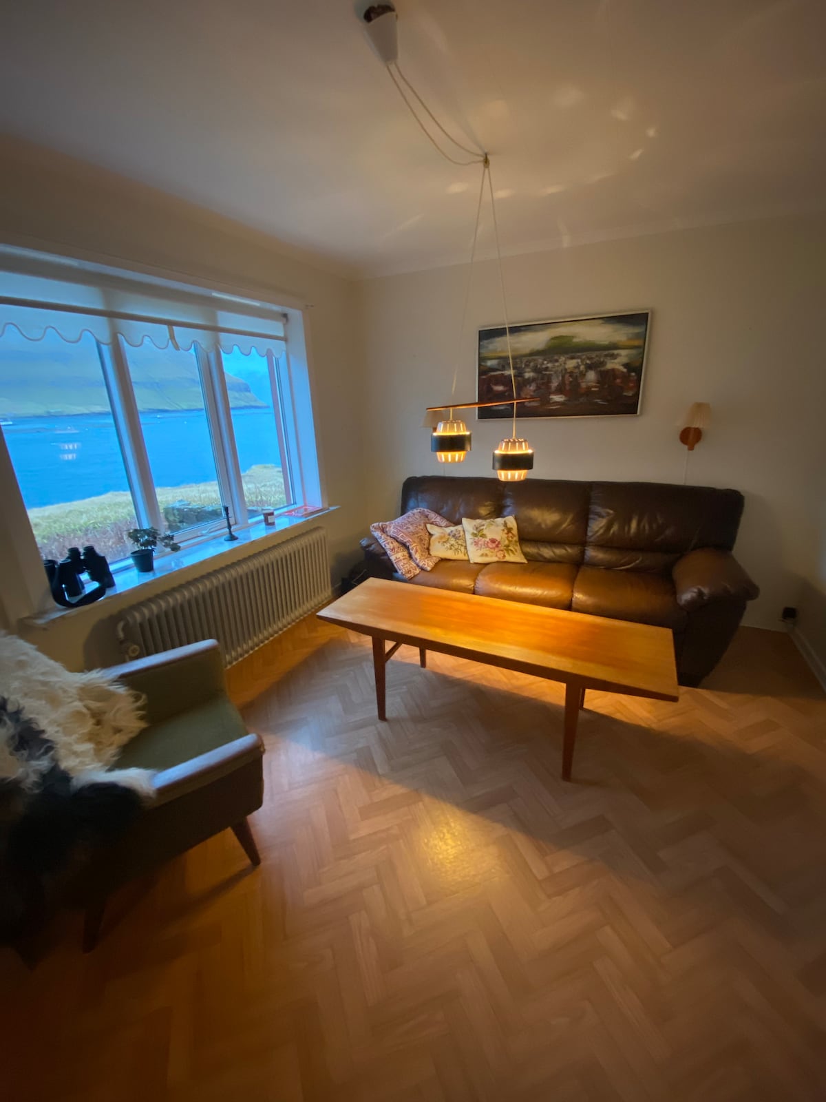 L'appartement a une vue fantastique et est à deux pas de l'eau et des montagnes. Il y a 8 min. à pied du bus le plus proche, que vous pouvez prendre gratuitement jusqu'au centre de Torshavn, ou faire la belle promenade le long de l'eau, qui est à seulement 3 km. du centre. L'appartement fait 70 m2 avec cuisine, salon, salle de bains et deux petites chambres, une chambre a deux bons lits simples, qui sont ensemble 180x200 et l'autre a un bon lit 140 x 200. La chambre 1 est avec un passage vers la chambre 2 ! À l'extérieur de l'entrée, il y a des meubles de jardin.