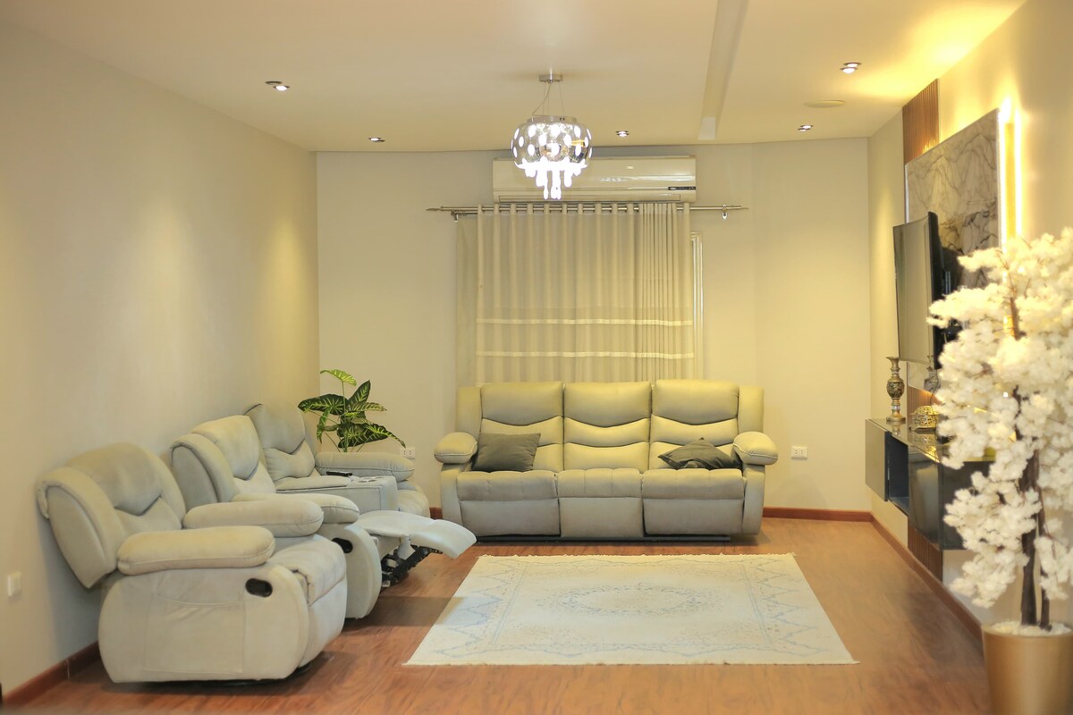 Réduction spéciale pour les étudiants et les séjours de plus d'une semaine Appartement au rez-de-chaussée avec jardin et entrée privée du complexe Al-Nouras à Ismailia, à 2 minutes de la mer. L'appartement est nouvellement meublé et dispose de tous les appareils électroménagers, lave-linge, télévision, Internet, cuisine américaine complète avec hotte, grand lit, 2 petits lits, un canapé confortable qui peut être utilisé comme un autre lit, un jardin privé où vous pouvez profiter de manger à l'extérieur et à quelques pas de la plage. L'appartement a toutes les commodités dont les individus ont besoin pour les loisirs et le confort. Le complexe dispose de services complets (supermarché, cafés en bord de mer) et est situé directement sur la route Palajet