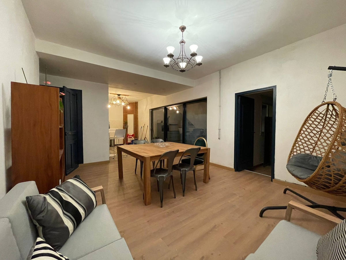 Vaste appartement cosy, refait à neuf, proche du centre, à deux pas de tous les commerces, restaurants et transports. Il offre un grand séjour avec canapé-lit confortable, TV HD avec Netflix, wifi et table à manger. La cuisine, ouverte, est entièrement équipée. La grande baie vitrée offre une belle luminosité. La chambre dispose d’un lit Queen size à baldaquins. Vous trouverez également une salle de bain spacieuse avec douche XL, ainsi qu’un lave-linge. En bonus : un jardin et une terrasse.