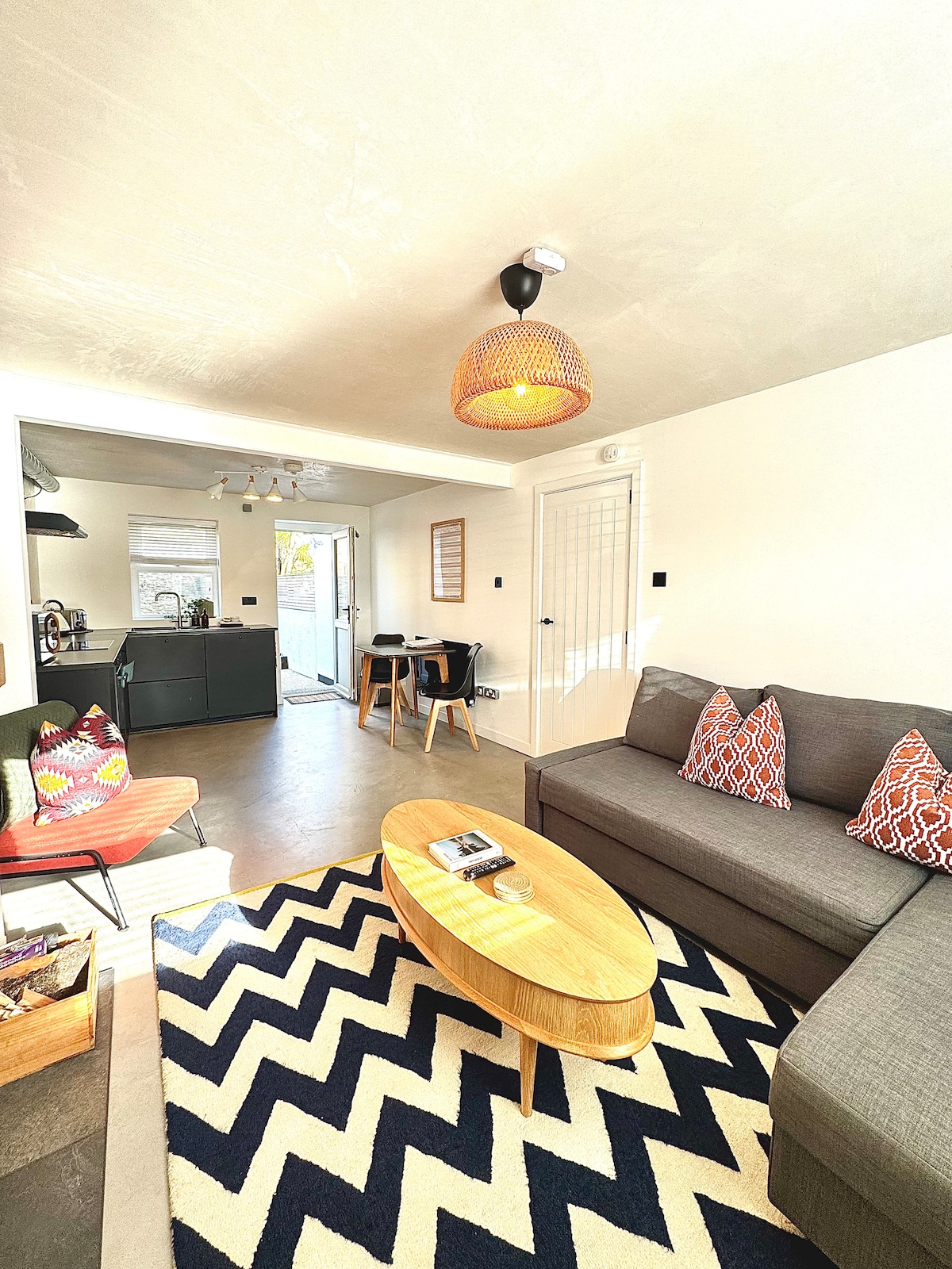 Just 100 metres from the sand, Waves is a light-filled, spacious beach loft apartment with vaulted ceilings and calm Scandi–coastal design. With private parking and pet-friendly ease, it’s the perfect retreat for surf breaks, romantic escapes, or effortless seaside holidays. Step outside to surf, swim, or stroll the iconic South West Coast Path — then return to laid-back beachfront restaurants and bars, all framed by Watergate Bay’s spectacular ocean sunsets.