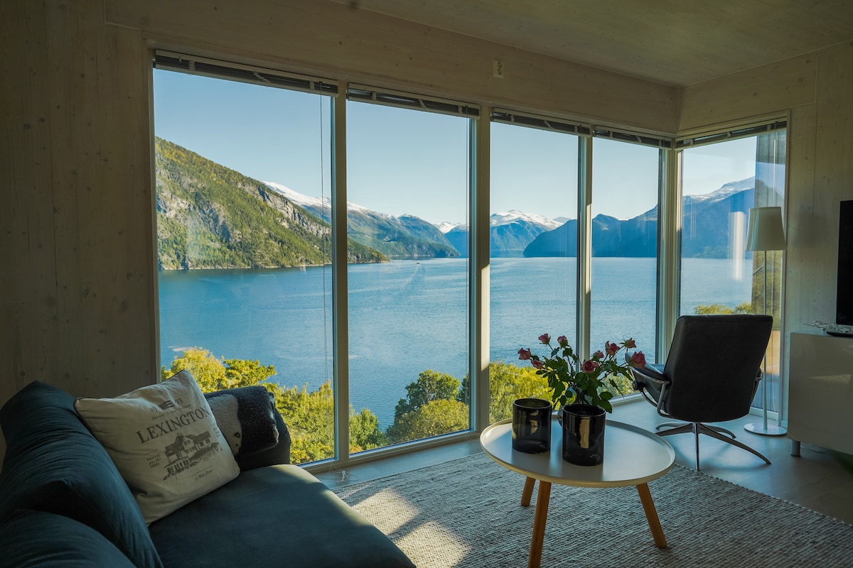 Cabane dans un fjord avec vue panoramique à proximité de Geiranger