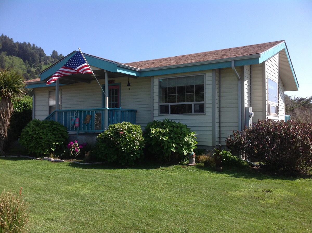 Maison modeste mais charmante située sur la côte de l'Oregon dans le village pittoresque de Yachats, à 10 minutes à pied de l'océan. Près de la pêche, de la pêche aux palourdes, des bassins de marée. Vue merveilleuse. Piscine extérieure chauffée en saison, jacuzzi. Courts de tennis, pickleball. Marchez le long de la rivière jusqu'à la mer. Détendez-vous sur la terrasse ou asseyez-vous sur le siège de la fenêtre, lisez un livre et profitez du feu dans le poêle à bois. Le chalet dispose de toutes les commodités modernes : lave-linge/sèche-linge, lave-vaisselle, télévision, DVD, Wi-Fi, nouveau système de chauffage. Canoë à utiliser sur la rivière.