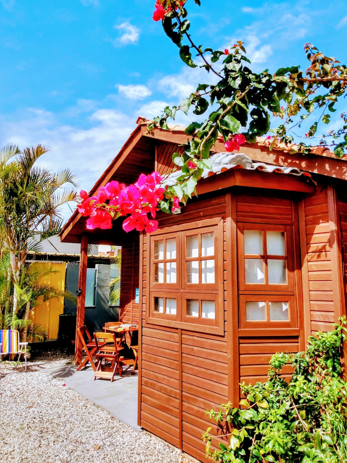 Bungalow sur une propriété partagée à 80 mètres du lagon - endroit idéal pour le kitesurf. Entrée privée et intimité ! La région est entourée par la nature et à 15 minutes à pied du centre-ville de Lagoa. À 1 min à pied d'un arrêt de bus. Le bungalow est composé d'une terrasse couverte extérieure avec table à manger, d'une cuisine équipée, d'une salle de bain complète et d'une grande pièce avec espace de travail et balcon. Un endroit confortable pour se détendre, profiter de la vie et du chant des oiseaux ! Parfait pour les couples, les célibataires et le télétravail !