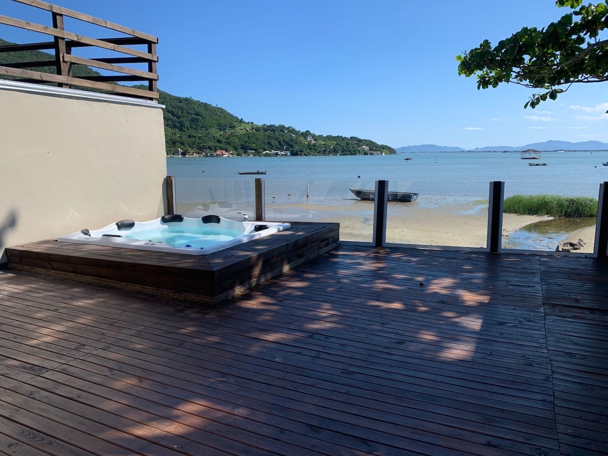 Belle et large maison (2700 pi²) en bord de mer dans le district de Ribeirão da Ilha, le quartier le plus préservé et traditionnel de Florianópolis. 3 suites avec lit Queen Size, lit double, 2 lits simples et lit bébé. Climatisation froide / chaude dans chaque chambre. PISCINE CHAUFFÉE. Grand salon avec télévision par câble et Internet, espace gastronomique avec barbecue, poêle à bois et four à pizza. La propriété est grande et dispose d'un accès à la mer, idéal pour le kayak (disponible pour les clients). Place à un incroyable repos familial !