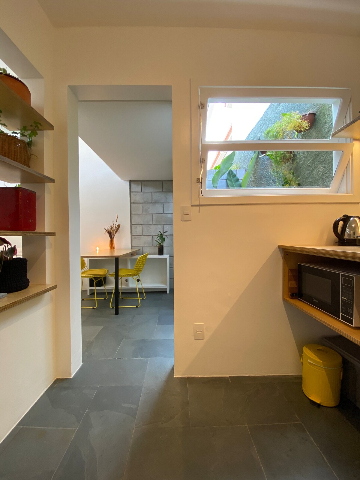 Situé à Trindade, à proximité de l'UFSC et du centre-ville de Florianópolis, il offre un accès facile aux plages (à environ 20 km). Dans une atmosphère intime et paisible, le studio est conçu pour votre confort et votre intimité. Elle est attenante à une maison moderniste, mais dispose d'un accès entièrement indépendant. La rue est large et sécuritaire, ce qui facilite le stationnement. Le logement a de hauts plafonds, un excellent éclairage, un grand lit, une cuisine bien équipée et unique, la climatisation chaud/froid, une télévision et une connexion Wi-Fi rapide. Serrure à mot de passe sur la barrière et la porte.