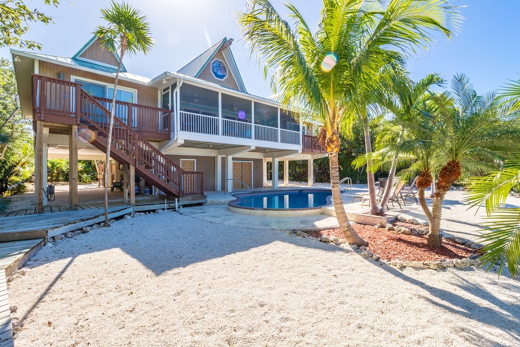 Cette belle maison de style polynésien offre 4 chambres, 4 salles de bain, un terrain magnifiquement aménagé et une grande piscine privée et chauffée en option. Idéalement situé sur l'eau libre du golfe du Mexique, les vues ne ressemblent à aucune autre. Situé à Grassy Key, cela permet aux voyageurs d'être à l'écart de l'agitation de la circulation de Marathon. - Capacité d'accueil maximale : 8 personnes (y compris les adultes et les enfants de tout âge) (*les enfants de tout âge, y compris les bébés, comptent pour l'occupation)