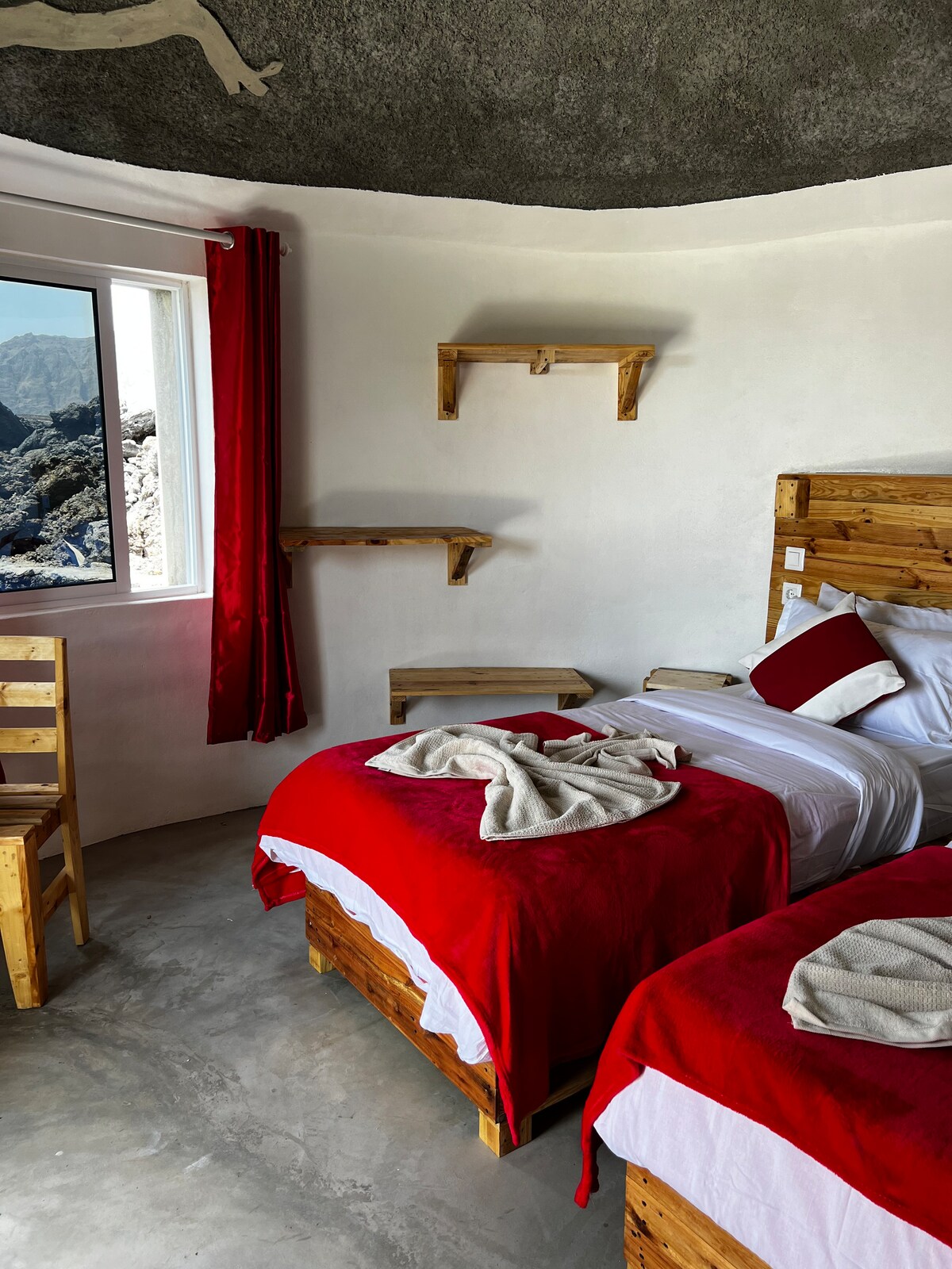 Votre « Funku » se trouve aux pieds du volcan Pico Do Fogo (2829), et à côté du restaurant Casa Marisa. Les Funku sont des maisons rondes traditionnelles uniques de Caldeiras, construites en pierre naturelle. Ce sont les seules modifiées pour les voyageurs. À l'intérieur confortable et avec salle de bain privée, un escalier à l'extérieur menant à la terrasse ronde et ombragée donnant sur les nouveaux champs de lave et le Pico. Nous sommes une famille, et les enfants (aire de jeux), couples de toute nature, célibataires, animaux de compagnie et ainsi de suite, sont les bienvenus.