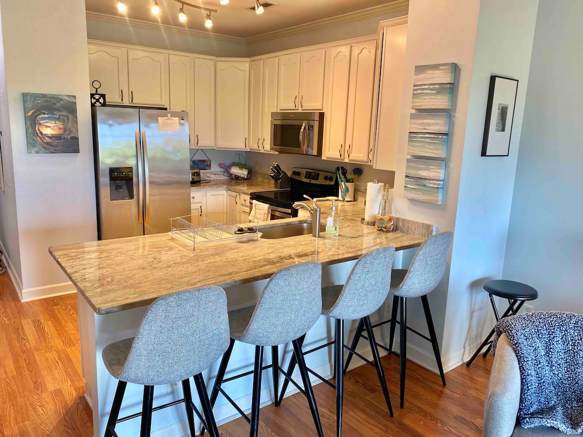 Réveillez-vous avec une vue paisible sur la rivière Folly, sirotez un café sur le balcon privé de votre chambre, puis promenez-vous jusqu'à la plage ou au centre-ville de Folly en quelques minutes. Ce condo magnifiquement rénové de 2 chambres et 2 salles de bain et demie dispose de deux balcons privés, d'une vue sur l'eau au coucher du soleil, d'un accès à la piscine et d'un emplacement imbattable — parfait pour les couples, les amis ou les petites familles à la recherche d'une escapade côtière relaxante. • À quelques minutes du centre-ville • Sécurité des promenades nocturnes • Pas de stress de stationnement • Bars/restaurants ***2,5 salles de bain pour seulement 4 personnes