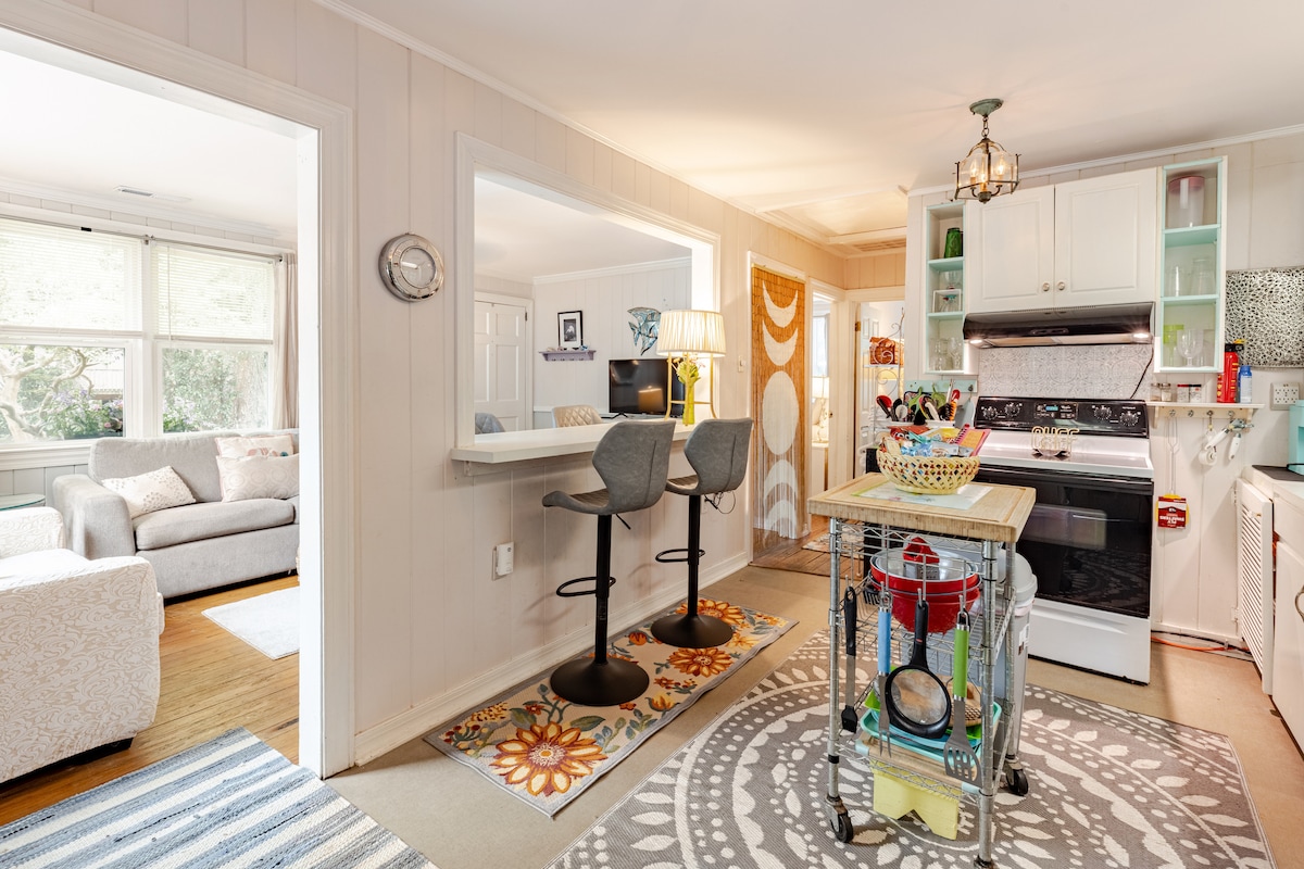 Ce charmant chalet des années 1940, entièrement rénové, de 2 chambres, est situé dans un emplacement privilégié à un pâté de maisons de la plage. Disposition typique de Folly : un immense porche avant, capturant la brise de l'océan, un séjour flanqué de deux chambres, toutes deux avec des lits Queen Size et chacune avec une salle de bain complète attenante. Une cuisine lumineuse avec de nouveaux appareils électroménagers et toutes les commodités pour préparer un repas en vacances. À seulement quelques minutes à pied ou à vélo de Center Street pour d'excellents restaurants et boutiques. Charleston est à moins de 15 minutes en voiture.
