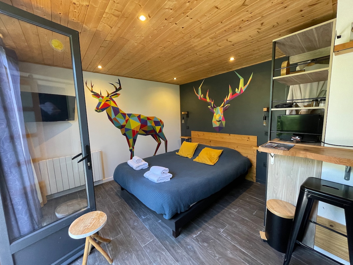 Studio de 27 m² pouvant accueillir jusqu’à 2 personnes, balcon de 6 m², pièce à vivre avec cuisine équipée ouverte, TV 43 pouces, canapé convertible en couchage 160X200, salle de bain avec douche, climatisation passive par geocooling. Ces studios sont des cocons douillets. Profitez de la qualité de nos équipements pour passer une nuit réparatrice, et de votre balcon privatif pour une parenthèse de douceur.