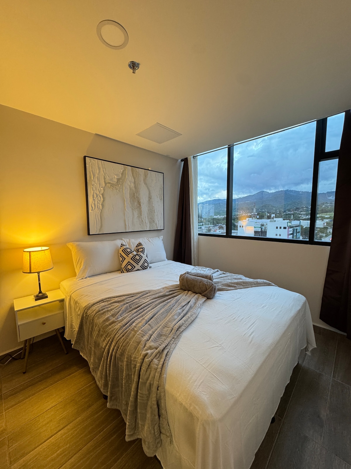 Appartement de luxe de 3 chambres au 22e étage de la Torre Morazán avec vue panoramique sur la ville et rideaux occultants pour un sommeil réparateur. Profitez de la climatisation dans chaque chambre et d'une connexion Wi-Fi haut débit. Les voyageurs ont accès à la salle de sport, à la piscine et aux cafés au niveau de la Plaza. Idéalement situé sur le boulevard Morazán, à quelques pas du centre commercial El Dorado et à quelques minutes de Los Próceres, NovaCentro L'ambassade des États-Unis est à seulement 5 minutes. Parfait pour les séjours d'affaires ou de loisirs.