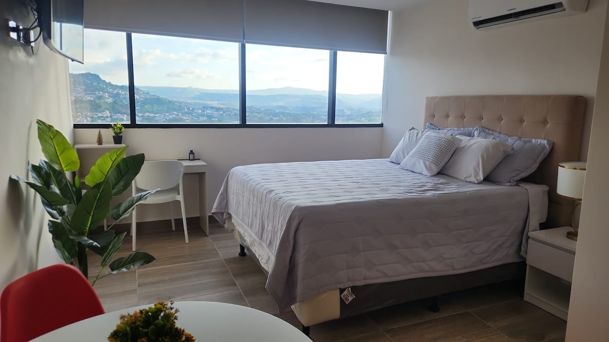 Profitez de votre séjour en famille ou entre amis dans cet appartement d'une chambre SÛR, spacieux et central ! ✔ PARKING GRATUIT (pour 1 voiture) Lit ✔ king size ✔ Canapé convertible Queen Size ✔ Télévision connectée avec Netflix et d'autres applications. ✔ Climatisation dans le séjour et la chambre. À 5 minutes de : ✔ Centro Cívico ✔ Centre commercial Las Cascadas ✔ Université José Cecilio del Valle À 10/15 minutes de : ✔ Centre commercial Multiplaza Centre médical du✔ Honduras ✔ Ambassade américaine