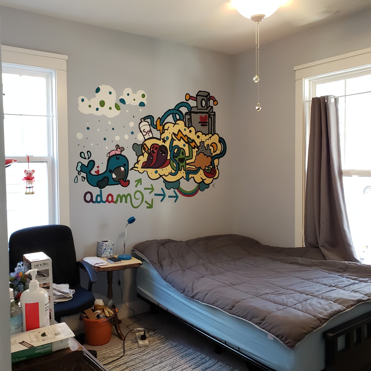 Une suite qui est un ancien studio d'artiste avec des fenêtres de 10 à 15 pieds de haut et un plafond de 20 pieds, convertie en loft d'une chambre avec entrée privée, salle de bain, salon et kitchenette. L'espace est attaché au reste de ma maison, mais vous aurez une entrée privée, votre propre salle de bain, un salon et une kitchenette et une table à manger à deux places. Vous n'aurez pas accès à une cuisine complète. Nouveau en septembre 2025 : Les rideaux occultants offrent de l'intimité la nuit et une pièce plus sombre pour dormir.