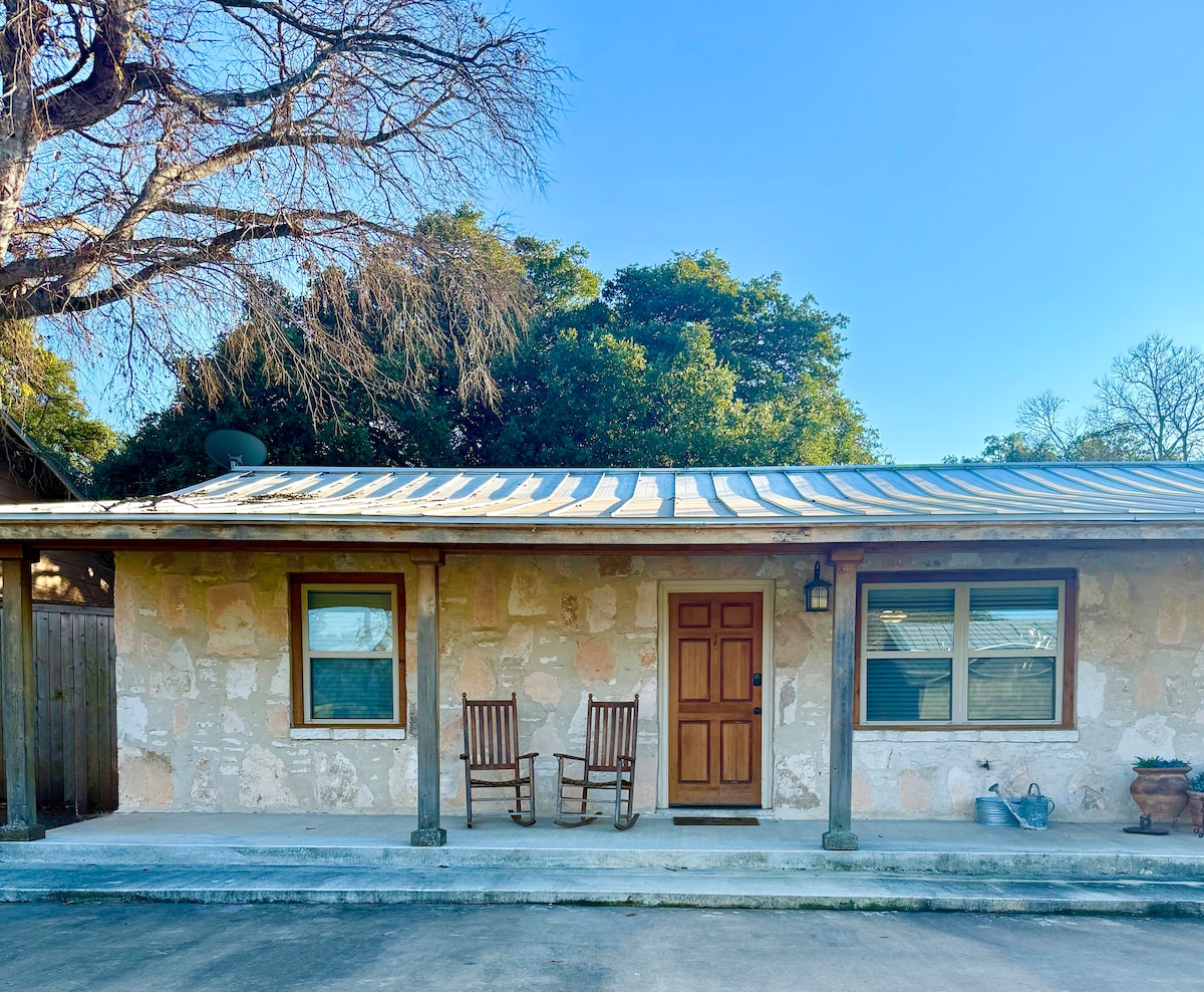 Notre chalet moderne est situé sur 40 beaux acres de Hill Country immaculée. Il peut accueillir jusqu'à 8 personnes ; parfait pour les petites familles, les couples ou les amis qui cherchent à se détendre et à profiter d'un peu de luxe à la campagne. Les voyageurs ont accès à la pêche, à la natation, à la cuisson de s'mores au feu de camp, à la détente dans le belvédère et à l'exploration de la propriété. Situé juste à côté de la brasserie Real Ale, à seulement 2 miles du centre-ville de Blanco avec des restaurants, des magasins et le parc d'État de Blanco. Austin et San Antonio sont également facilement accessibles en voiture.