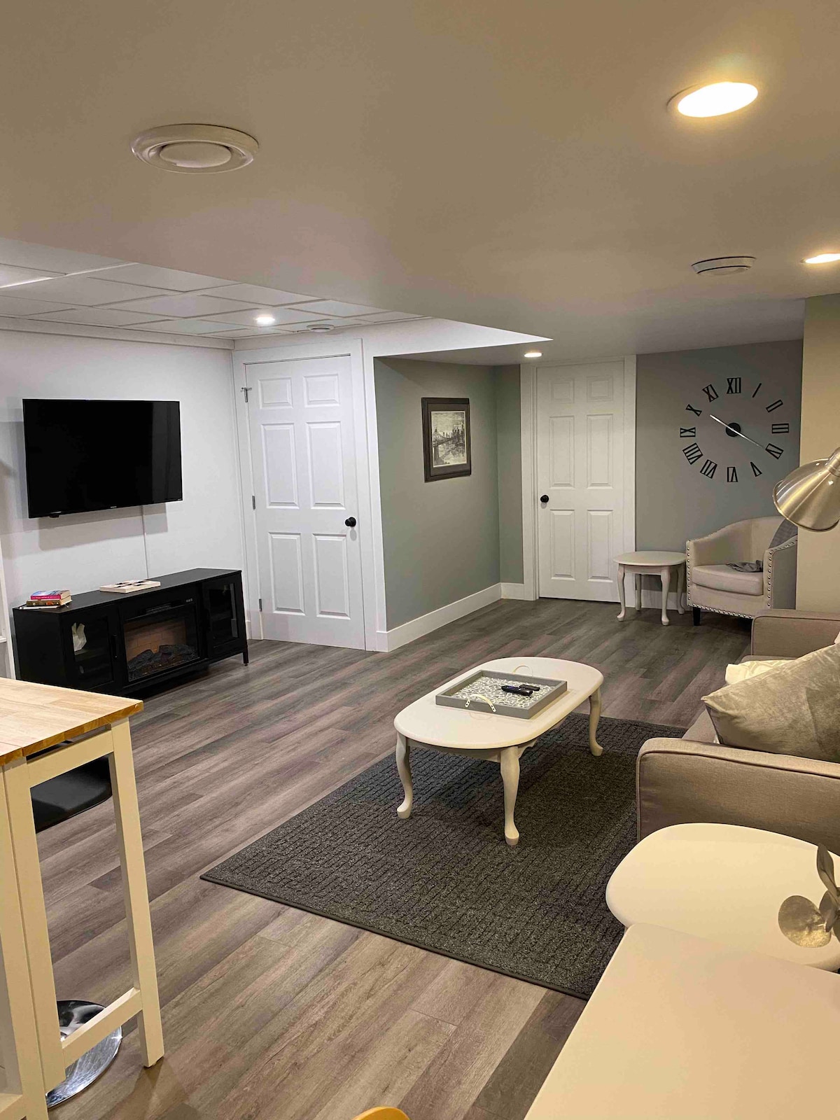 Ce logement affiche un style résolument unique. Un grand canapé est dans le salon où vous pourrez vous détendre et regarder la télévision. La grande télévision est livrée avec Apple TV qui a de nombreuses applications qui peuvent être utilisées. Comprend une salle de bain luxueuse avec baignoire, douche et cheminée. Vous pouvez vous entraîner sur le vélo Echelon et utiliser leur application de fitness sur votre téléphone. Café Nespresso gratuit. À 9 minutes en voiture de l'Université du Nouveau-Brunswick. La cour arrière donne sur la forêt, ce qui est agréable pour la randonnée, la raquette et le ski de fond.