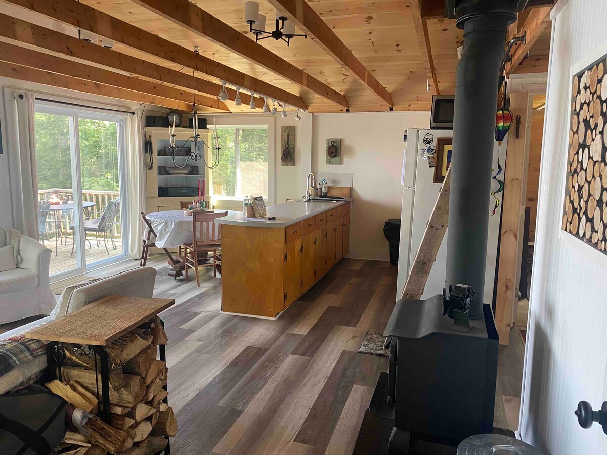 Notre cabane de deux chambres isolée, très calme et privée avec loft dispose d'un porche grillagé sans insectes sur sa grande terrasse. Le chalet surplombe le paisible de Sandy Pond, peuplé de pygargues à tête blanche, de huarts et d'hérons. Regardez de superbes levers et couchers de soleil, pêchez et faites du kayak depuis notre quai. Nous sommes proches de la côte de Belfast, Unity, MOFGA (foire annuelle Common Ground), Waterville, Acadia et Camden. Mangez au Lost Kitchen, visitez les Amish, faites de la randonnée sur le sentier Hills to Sea.