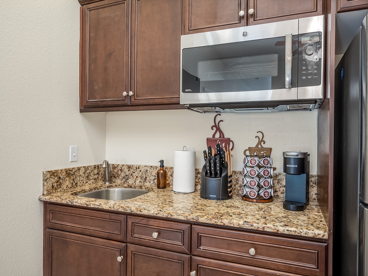 Profitez d'une belle suite moderne construite en 2021. Quartier très sûr, familial et nouvellement développé avec de nombreux magasins autour. Parfait pour les voyageurs en solo, les couples et les amis, que vous voyagiez pour le plaisir ou pour les affaires. Le logement est accessible via une serrure intelligente et dispose d'une salle de bains, d'une kitchenette, d'une chambre avec un lit Queen Size et d'un futon pour les voyageurs supplémentaires. À proximité des parcs nationaux, des hôpitaux, de l'aéroport et des principales autoroutes. Confort, tranquillité d'esprit et intimité totale.