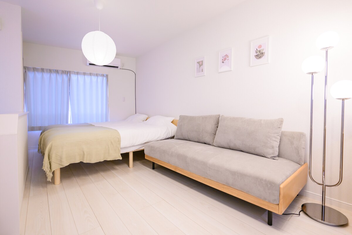 Bienvenue à la Maison Fukuroku 201! Emplacement pratique à 1 minute à pied de la station Bamboo.Ce studio est parfait pour les visites touristiques et les vacances-travail avec un excellent accès et des installations confortables. Il est également facile de se rendre à Shinjuku, Shibuya et à la gare de Tokyo, ce qui le rend pratique pour sortir en ville et l'utiliser pour les affaires.Vous pouvez séjourner confortablement de courte à longue durée dans un environnement calme à Fuchu. L'intérieur moderne naturel et les installations complètes offrent à la fois un séjour de type hôtelier et le confort de la maison.En plus de 2 lits simples, il y a un canapé-lit qui peut accueillir jusqu'à 3 personnes.Tout le monde peut dormir confortablement! Il y a une table et un éclairage chaleureux qui peuvent servir d'espace de travail, pour vous concentrer sur votre travail et vous détendre. ◾️- Transport À environ 30 minutes de la gare de Shinjuku À environ 50 minutes de la gare de Shibuya Environ 50 minutes de la gare de Tokyo Université d'études étrangères de Tokyo à environ 15 minutes Environ 20 minutes du stade Ajinomoto ◾️Environs C'est un environnement pratique avec une minute de marche jusqu'au dépanneur et à la gare. Confortable pour les visites, les affaires et les séjours de longue durée dans l'atmosphère calme de la ville de Fuchu.Profitez de votre séjour seul dans une chambre qui allie confort et commodité. Il peut accueillir jusqu'à 3 personnes.