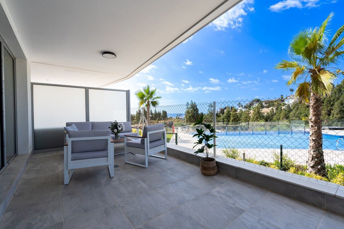 🏝Benalbeach🏖 Plage, piscines, terrasse, jardins.