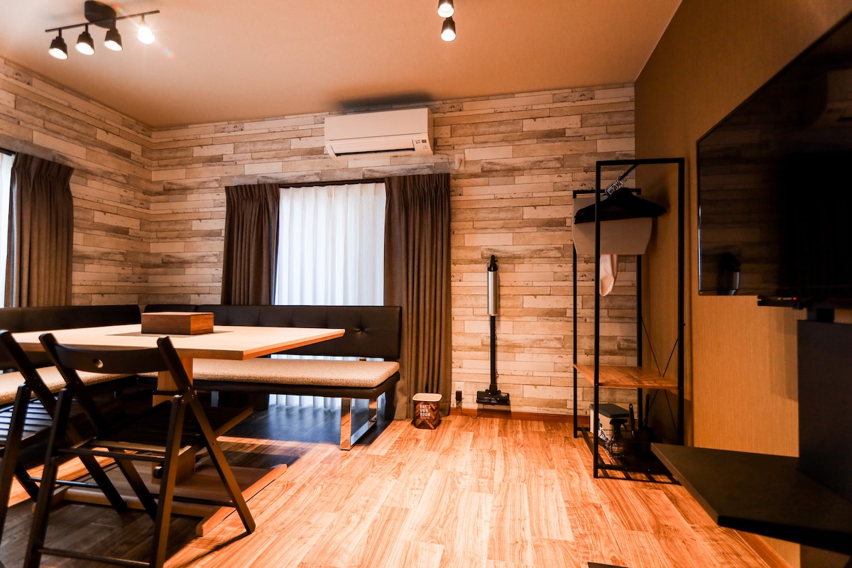 À 5 minutes de la gare de Makuhari (sortie nord). Tout le premier étage d'un logement récemment construit est réservé à un groupe privé. DANS LE MAKUHARI VIVANT Ouverture en février 2026 Un séjour spacieux de 64 ㎡. Arrivée à 15 h / Départ à 11 h. Stationnement gratuit pour une voiture. Wi-Fi haut débit. Laveuse-sécheuse incluse. Mobilier de design scandinave dans un cadre Japandi raffiné. Matelas Sealy haut de gamme et un bain à remous extérieur privé. Accès facile aux aéroports, à Makuhari Messe et à Tokyo Disney Resort.