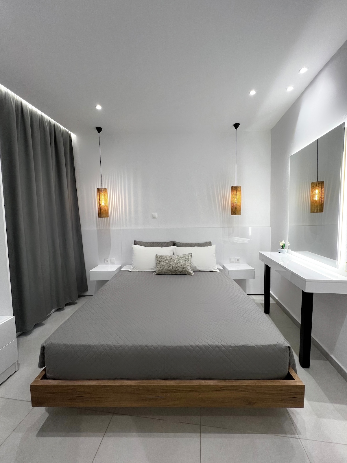 This brand new stone house manages to blend a mix of traditional and neoclassic styles into the perfect vacation "maison".Its open space layout is ideal for families while its size alone makes sure that you will feel spoiled.On a total of 165 m2 there are 2 very spacious bedrooms and two full bathrooms on the top floor and an open plan full kitchen, dining room,living room,office space and bathroom on the ground floor. It is possible to rent it together with a separate cottage for 2 extra people