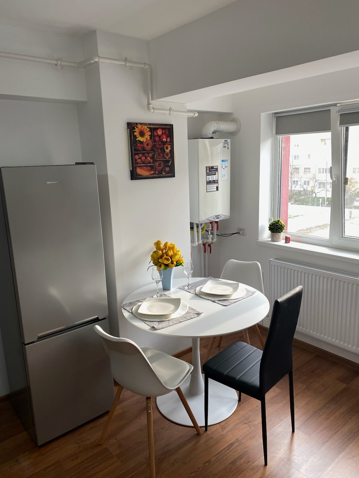 Découvrez une oasis de confort au centre de Bacau! Ce studio moderne est l'endroit idéal pour une escapade relaxante, que vous soyez en voyage d'affaires ou que vous exploriez la ville. L'espace élégant, décoré avec bon goût, offre toutes les commodités nécessaires : une connexion Wi-Fi rapide, une cuisine entièrement équipée, un lit confortable et un balcon. Situé à quelques pas des restaurants, des cafés et des points d'intérêt, le studio vous offre un accès rapide au meilleur de Bacau.