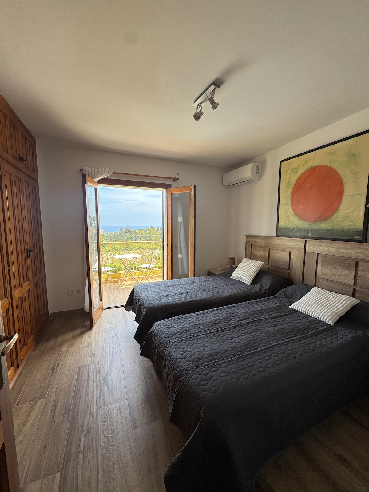 Bienvenue à Horizonte Azul, un nid douillet avec vue imprenable sur la mer et les spectaculaires falaises de la crique Moraig. Situées en quartier résidentiel, vos deux jolies chambres ont des entrées individuelles et sont reliées par une salle de bain à l'italienne. Sur votre terrasse ombragée, une table et meuble évier vous permet de préparer le petit-déj. Activités? Réservez une leçon privée de Pilates, faites de la rando, de la plage ou visitez le coin. Nous nous réjouissons de votre séjour!