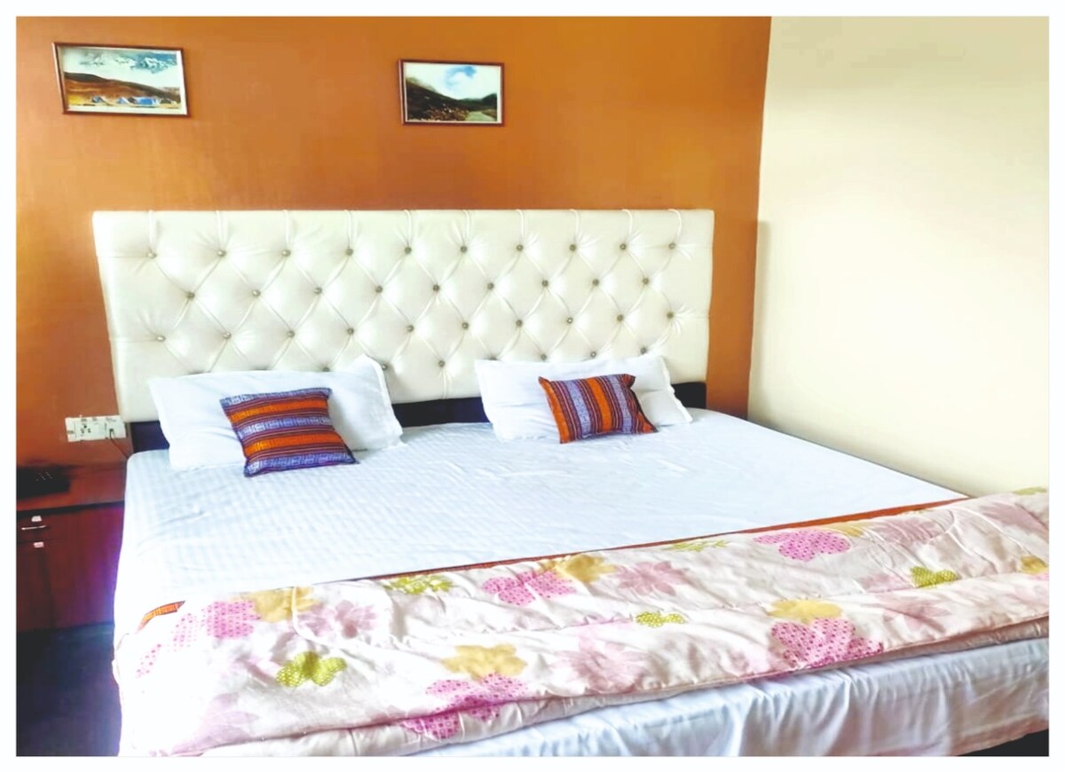 Découvrez le luxe dans notre chambre haut de gamme spacieuse avec vue panoramique sur la chaîne de Kanchenjunga, où la sophistication rencontre le confort. Profitez d'un lit king-size, d'un décor élégant et d'équipements modernes pour un séjour inoubliable. Détendez-vous avec style et profitez pleinement de votre séjour chez nous.