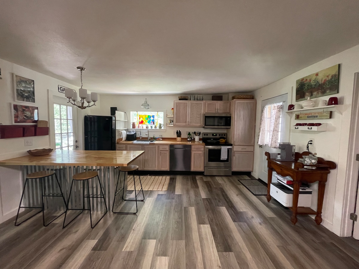 Le Salty Barn est minuscule et tout sauf ordinaire. Il se trouve à distance de marche du Marshwalk, avec de nombreux restaurants et fruits de mer frais. Le canapé confortable se déploie pour fournir un lit double, ou, si vous êtes courageux, vous pouvez monter les escaliers jusqu'au loft, qui dispose d'un matelas queen size. Détendez-vous à l'intérieur avec vue sur la verdure à l'extérieur, ou installez-vous sur une chaise Adirondack et détendez-vous à l'extérieur près de la cheminée. C'est l'endroit idéal pour une courte escapade avec beaucoup d'activités à proximité.