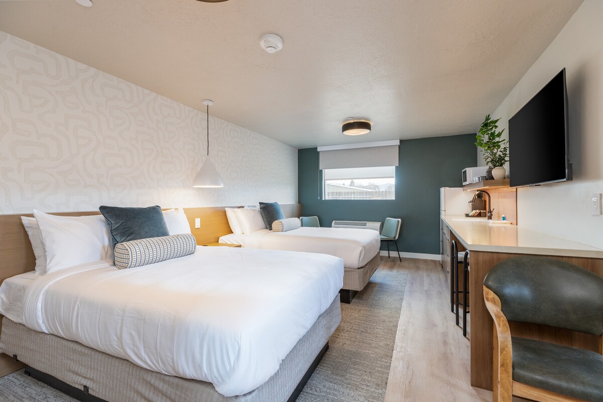 Perfect basecamp for friends or families exploring Southern Utah, this spacious double room at Prospector Inn offers two comfortable beds and everything you need for a relaxing stay. Minutes from Lower Calf Creek Falls,Peek-a-Boo & Spooky Slot Canyons,and other iconic spots.Located directly off Scenic Highway 12 with easy access to trailheads and dining. Fast WiFi,smart TV, mini fridge, simple self check-in,and a quiet atmosphere after long days outdoors.