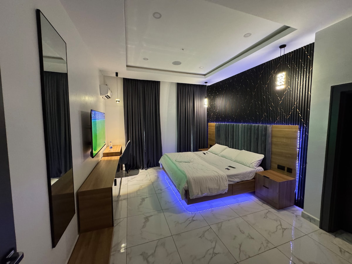 Profitez de votre séjour et détendez-vous dans cet appartement calme, élégant et sécurisé avec Wi-Fi haut débit, Dstv, Netflix et Prime Video avec secours électrique. Que vous soyez en visite professionnelle ou en voyage de vacances à Abuja, vous vous sentez comme chez vous.