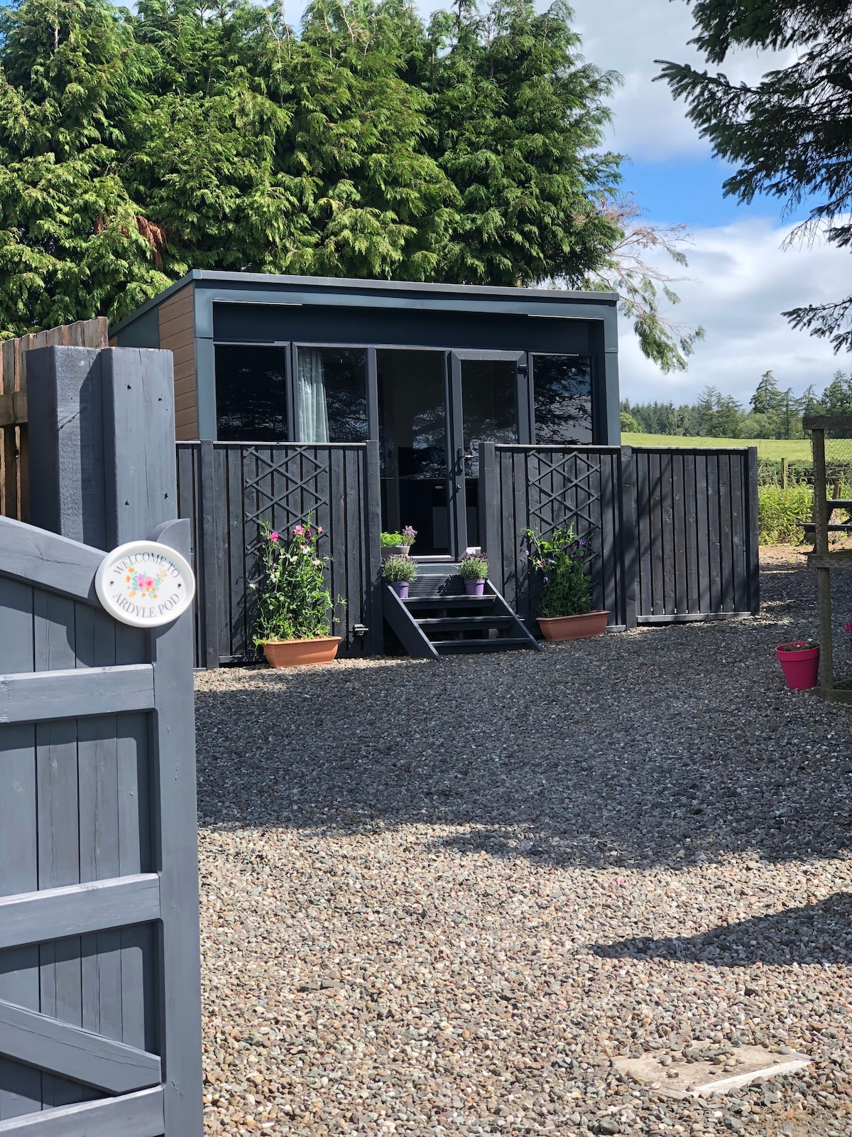 Nous sommes situés dans le village verdoyant de Tarbet, et à seulement deux minutes à pied des rives du Loch Lomond. Nos suites spacieuses disposent de baies vitrées avec vue spectaculaire sur le sud et directement sur le centre de Loch Lomond. Chaque suite dispose d'un coin salon, d'une table pour le petit-déjeuner, d'un accès privé, d'une terrasse privée et d'un abri sous un toit en tôle pour que vous puissiez profiter du paysage spectaculaire, beau temps, mauvais temps. Les suites ont un décor cool et original avec WiFi et Netflix.
