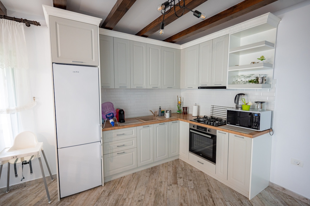 Magnifiquement rénové et élégamment décoré, notre appartement de 2 chambres est situé au cœur de la ville, offrant une expérience authentique de Nehoiu – une merveilleuse ville de montagne. Vous serez à quelques pas des boutiques, des restaurants et des cafés locaux. Il y a beaucoup d'endroits remarquables à explorer, tels que le lac Siriu (20 minutes en voiture), les volcans de boue (1 heure de route) ou les monastères orthodoxes exceptionnels (Ciolanu, Rătești, Cârnu – à moins d'une heure de route).
