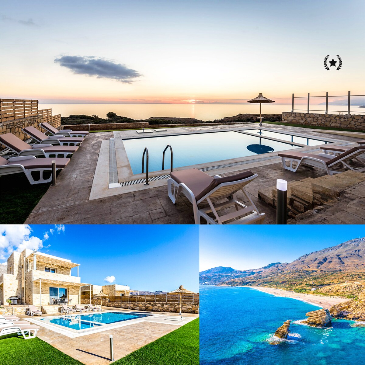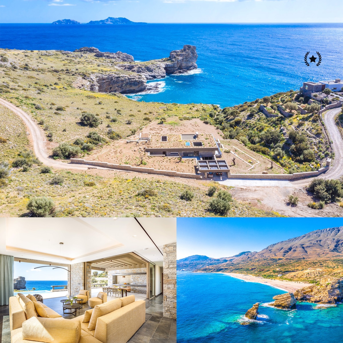 Imaginez être hypnotisé par un nuage à flanc de colline du paysage doré du sud de la Crète et la mer bleue profonde qui s'enroule autour de votre toute nouvelle villa. Un bel exemple de design contemporain se mariant parfaitement avec la structure locale en pierre, la symétrie et les tons terreux, tous couverts d'une esthétique luxueuse, mais familière avec la Crète. Son joyau, une piscine à débordement divine de 50 m², offre une vue imprenable sur la mer Libyenne. Les nuits étoilées et les repas en plein air seront sûrement un souvenir que vous n'oublierez pas !