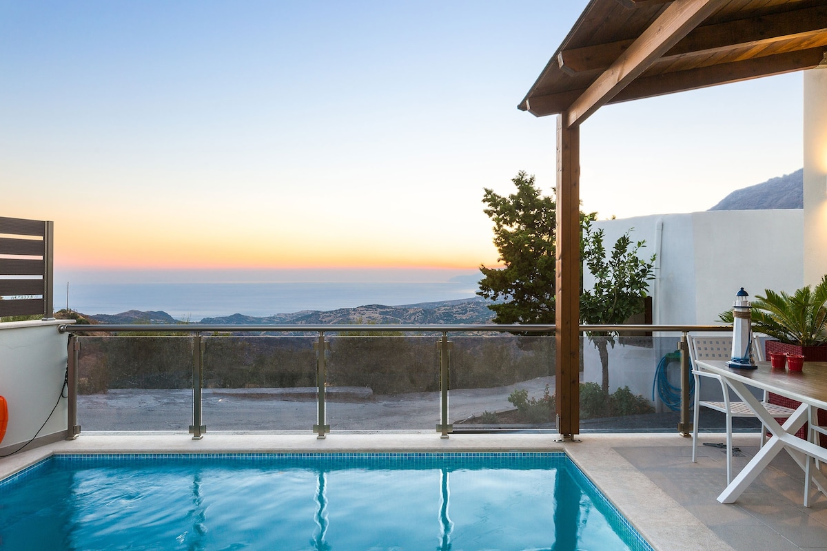 Couronnement dans un emplacement au sommet d'une colline à l'extérieur du village d'Akoumia et au-dessus de la plage pittoresque de Triopetra dans le sud de la Crète, est une villa de vacances de 2 chambres vraiment charismatique qui peut accueillir 4+1 personnes, c'est l'un de ces endroits qui capture le cœur et l'imagination de tout voyageur à la recherche d'un hébergement de luxe avec une vue panoramique spectaculaire sur la mer de Libye.