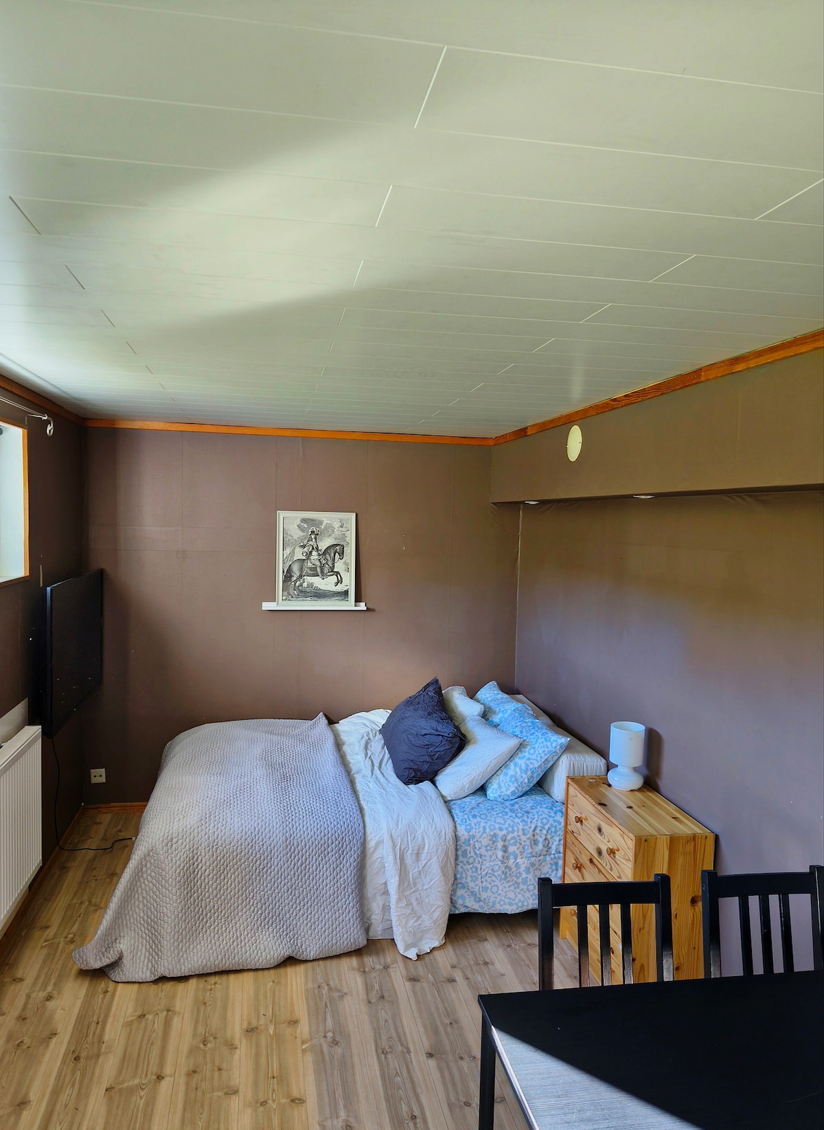 Le chalet est situé juste à côté de Testeboån, à environ 2 mètres de la véranda. Il est possible de se baigner et de pêcher, ou de s'asseoir au coucher du soleil et de regarder l'eau. Le chalet est entièrement équipé de tout ce dont vous avez besoin pour un séjour. Le wifi, la télévision et le parking sont inclus. Il est possible d'emprunter une machine à laver, de recharger une voiture électrique ou de louer le sauna, pour une somme modique. Si vous voulez visiter Gävle, il y a des pistes cyclables, ou vous pouvez prendre le bus, à partir de l'arrêt de bus qui se trouve à 200 m. Pendant l'été, nous vendons des légumes.