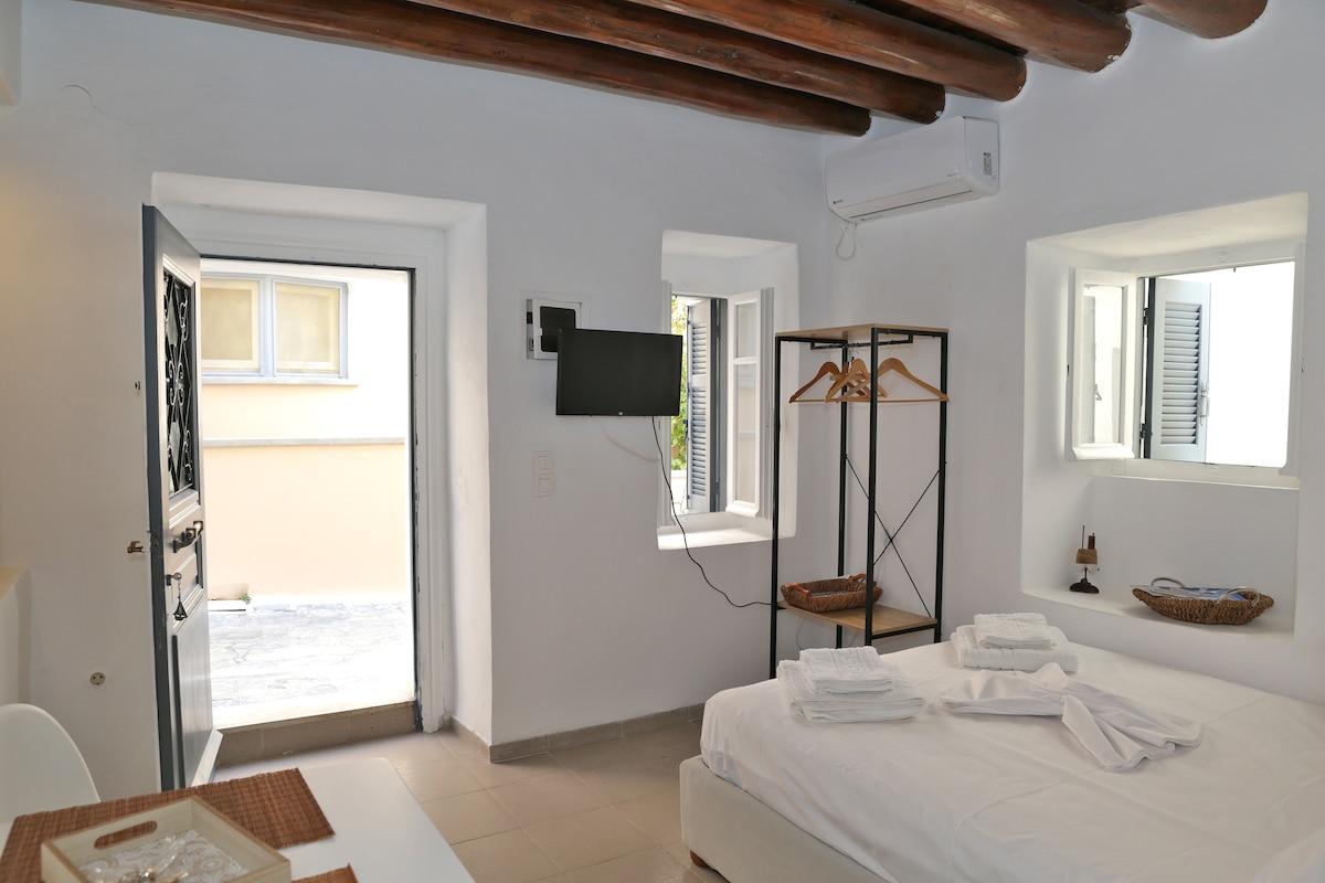 Dans les moulins à vent de la région, à cinq minutes de la rue piétonne de la capitale Andros Chora,où se trouvent les musées de l'île, les STUDIOS Roula' S vous attendent dans un environnement familial à des prix abordables.Les appartements meublés de 2 à 3 lits ont cuisine équipée,réfrigérateur,climatisation, TV LED, WIFI SANS FIL VDSL.