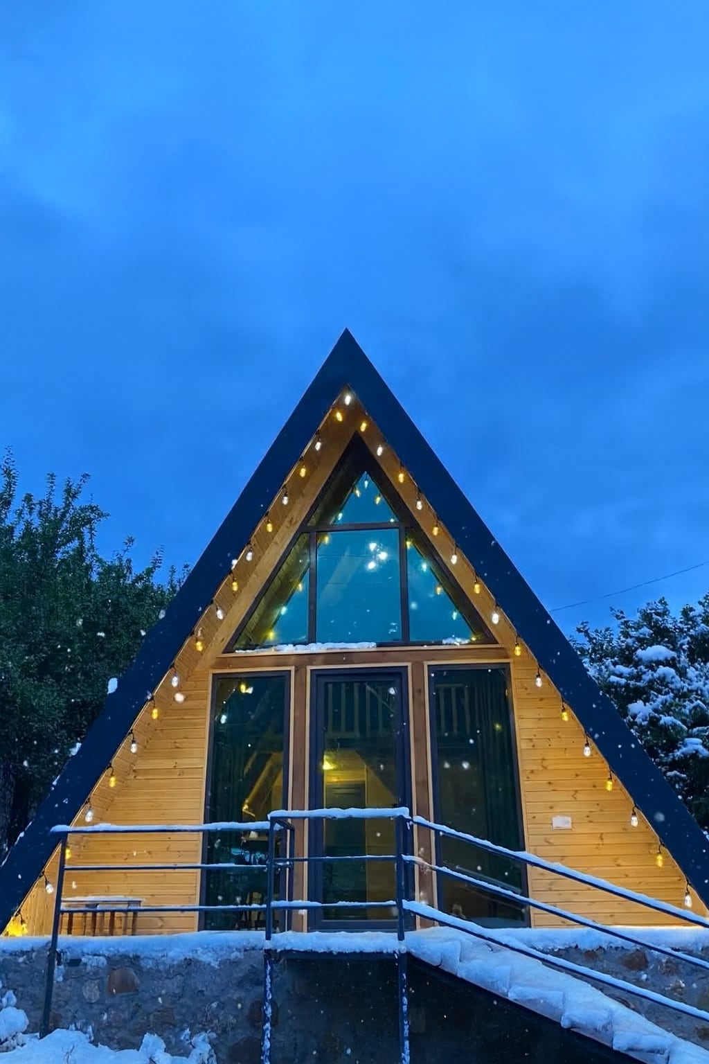 Une chambre (fenêtre en verre) pour 2 personnes Chalet triangulaire à deux étages 1er étage, salon, salle de bain, cuisine (prune, blender, four à micro-ondes, bouilloire, machine à café Nespresso, vaisselle) mini-bar Un balcon avec vue sur le Dzor, une petite piscine en bois avec eau chaude, un hamac Au 2eme étages, une chambre vitrée