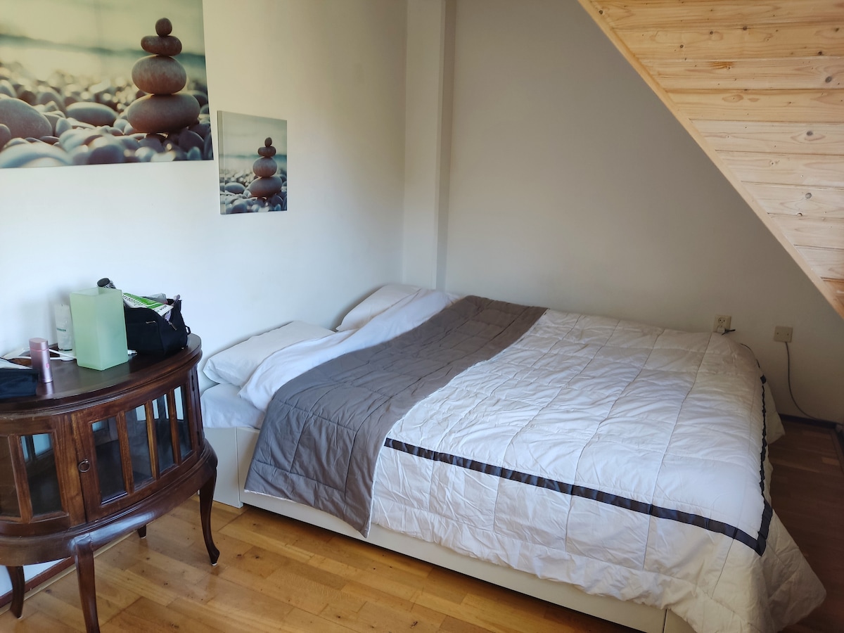 Un petit chalet en bois bleu avec sa propre entrée et véranda, situé au cœur de Geldrop (près d'Eindhoven). Vous pouvez profiter ici en toute intimité, explorer la région à pied (y compris Strabrechtse Heide) et découvrir l'hospitalité confortable du Brabant bourguignon. Geldrop dispose d'un centre étonnamment agréable rempli de boutiques et de restaurants. Il y a une chambre séparée et un lit dans le salon, une connexion Wi-Fi, la climatisation, le réfrigérateur, le thé, le café, la télévision, Netflix, le canapé, la table et le petit déjeuner ! Ce qui est délicieux, c'est que vous êtes notre seul voyageur !