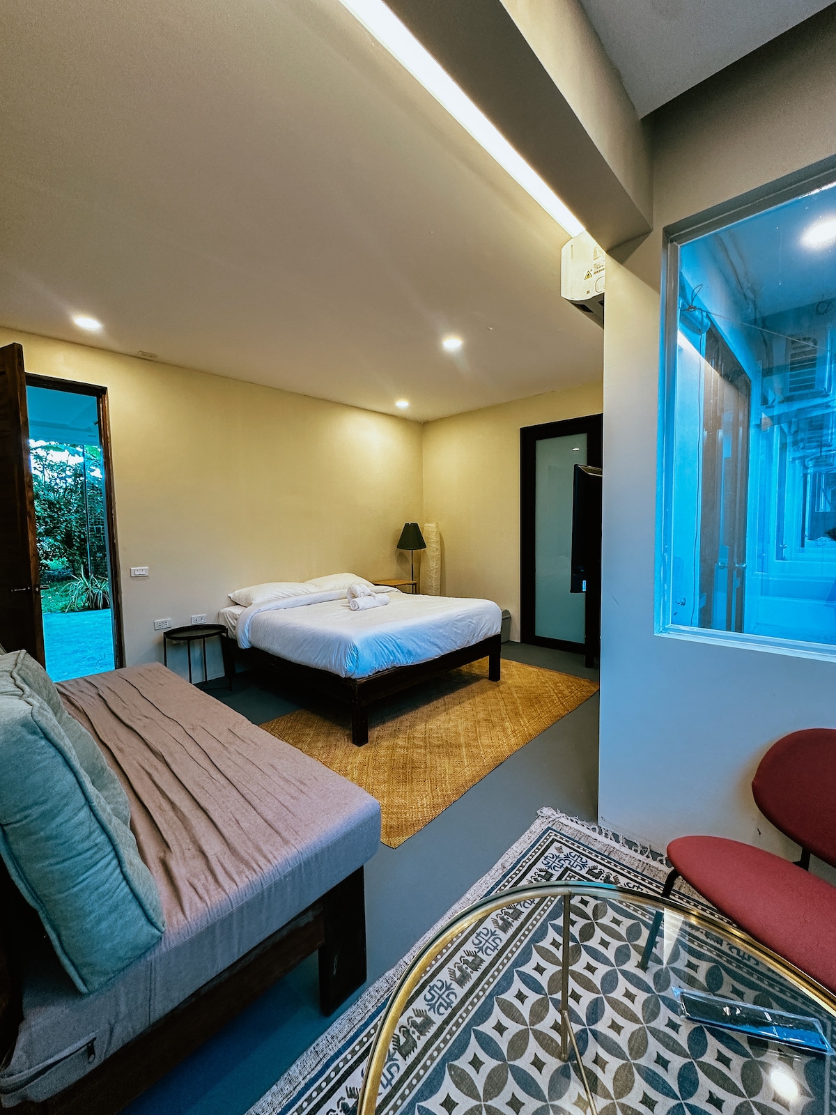 Vous séjournerez dans la chambre haut de gamme de Copacabana, un petit boutique-hôtel dans le centre de General Luna. Nos six chambres élégantes et intimes offrent le mélange parfait de charme esthétique, de produits de base modernes et de service bien pensé. La chambre premium est parfaite pour les voyageurs qui veulent quelque chose de plus spacieux ainsi que des équipements supplémentaires tels qu'un miroir de corps complet, une vue sur les arbres voisins, ainsi que le confort d'être au deuxième étage, loin du bruit de la route.
