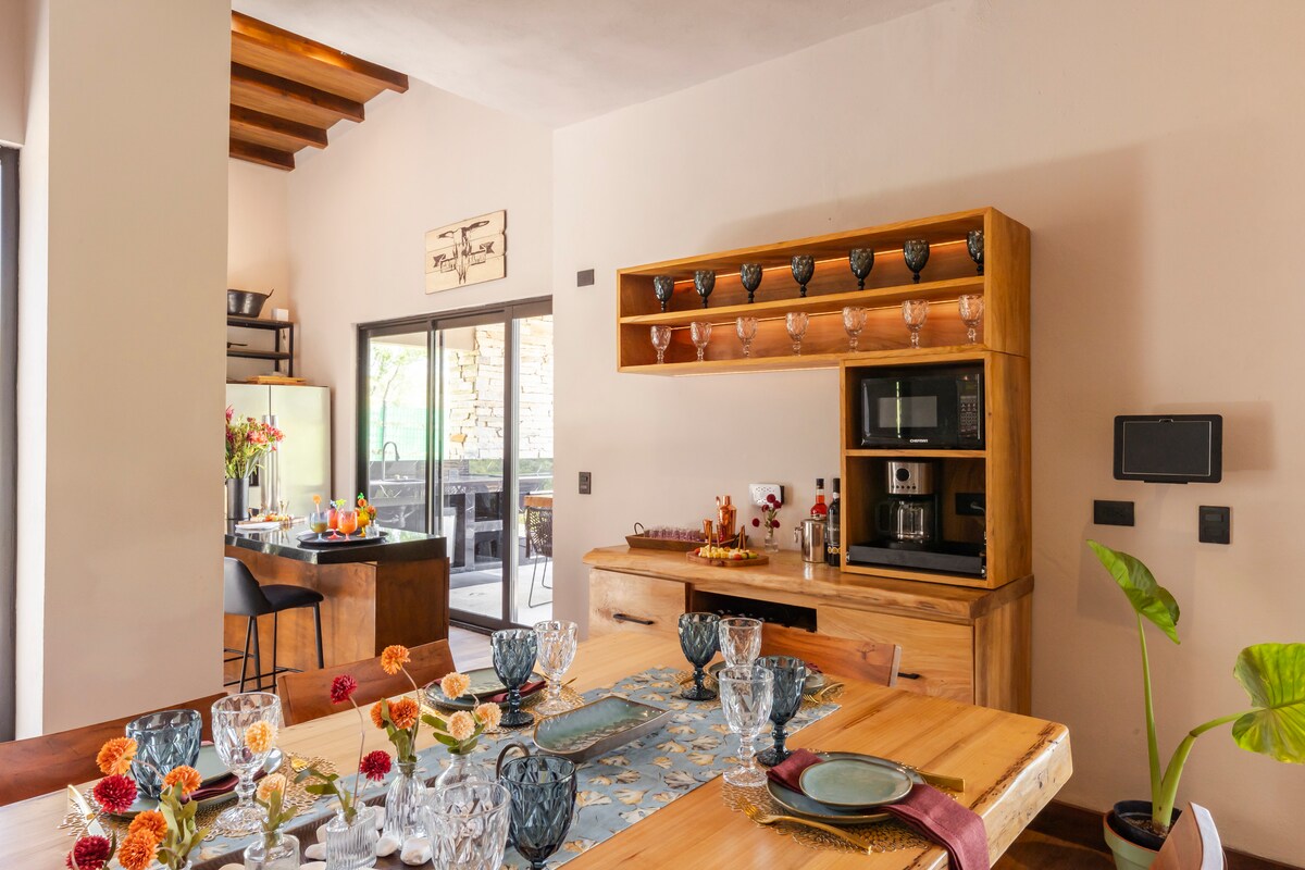 Bienvenue dans notre maison confortable dans une résidence sécurisée située à seulement 4 minutes de l'Université de Montemorelos. Que vous veniez pour le travail, les études ou les vacances, nous avons tout ce dont vous avez besoin pour vous sentir comme chez vous. Lorsque vous arrivez à l'appartement, vous pouvez entrer avec votre code personnel. Le logement dispose de 3 climatiseurs pour votre confort. Dans le salon, vous pouvez profiter d'une télévision intelligente de 50 po avec Netflix gratuit ainsi que d'une connexion Internet haut débit. Le patio a un barbecue, une table et des chaises.