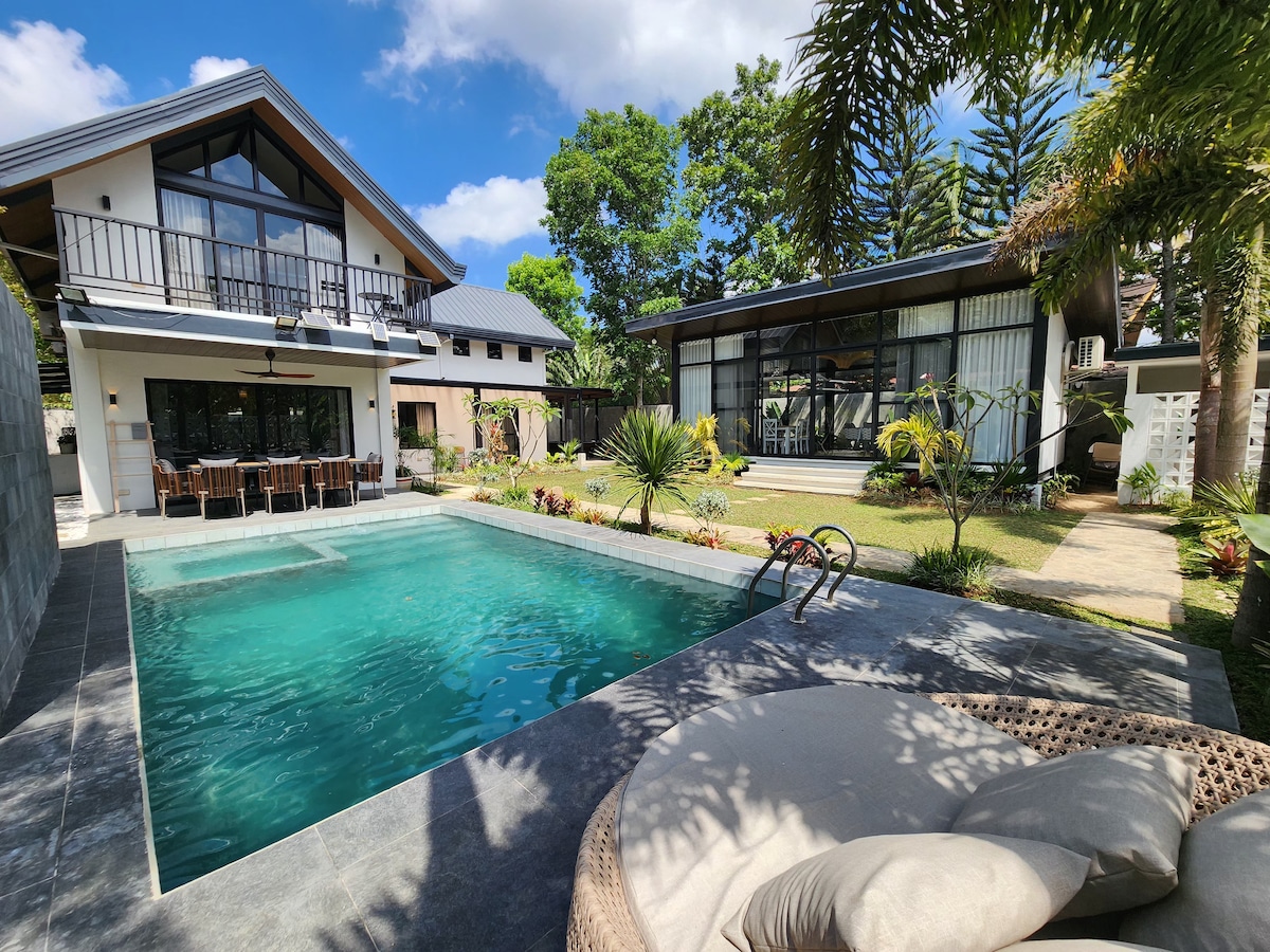 Bienvenue à Cazaneia 🌿✨ Profitez d'un espace esthétique entouré d'une végétation luxuriante et d'un environnement calme, l'endroit idéal pour se détendre et se ressourcer. Nos espaces de vie, cuisine et chambres sont tous entièrement climatisés pour votre confort. Plongez dans notre piscine d'eau salée unique, douce pour la peau, les muscles et les articulations, rafraîchissante et thérapeutique! À quelques minutes en voiture du Grand Manille. Parfait pour la planification d'entreprise, les réunions de famille, les célébrations intimes, les mariages et les séances photo/vidéo d'affaires.