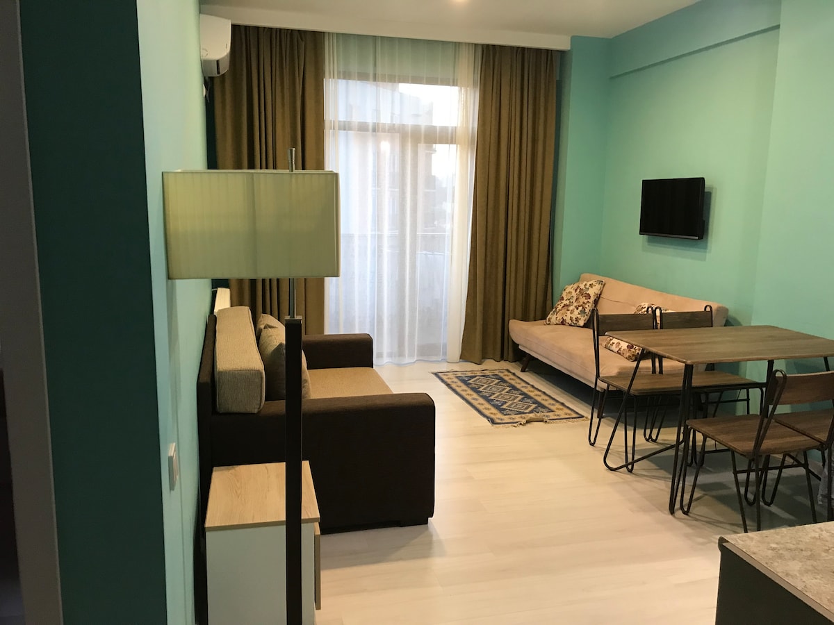 Il s'agit d'un endroit central à Batoumi, au bord de la mer, pour vos amis et votre famille. Il y a beaucoup de cafés et de restaurants autour. À proximité, il y a les endroits remarquables de la ville. L'appartement est paisible, très propre, équipé de tout le nécessaire. Vous pourrez également profiter d'une superbe vue depuis le balcon où vous pourrez également prendre une tasse de café ou de thé.