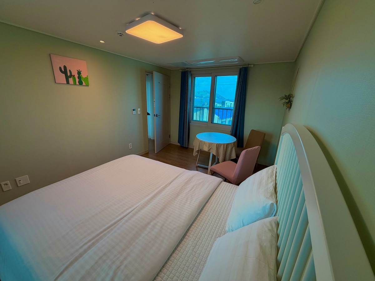 Les personnes❗️ supplémentaires ne sont acceptées que si elles sont des « membres de la famille ». (Fêtes interdites❌) Si le nombre de personnes❗️ supplémentaires n'est pas une famille, veuillez consulter l'hôte avant de réserver. Bonjour. C'est Stay Hyeopjae 10-gil. La chambre 3 (2ème étage) est une chambre, un salon, une salle de bain, une cuisine et une terrasse pour ceux qui voyagent seuls, des amis en voyage d'amitié! C'est un endroit recommandé pour les couples et les familles. Asseyez-vous sur le canapé et regardez la télévision, et vous pouvez voir la mer de Hyeopjae sur la terrasse juste à côté. Vous pouvez voir Hallasan à travers la fenêtre opposée. Chaque chambre et salon est équipé d'un système de contrôle de la température de la chaudière, ce qui vous permet de régler la température différemment dans la chambre et le salon. (Climatisation installée dans la chambre et le salon 0) Au rez-de-chaussée, une cour en pelouse, un mur de pierre de Jeju et un palmier des Canaries qui a gardé son siège pendant environ 35 ans! (Serrure de porte) Un endroit où vous pouvez vous reposer en toute tranquillité avec un clavier, un interphone vidéo et une vidéosurveillance installés! Passez une journée de détente en ressentant la sensibilité unique de l'île de Jeju sur Stay Hyeopjae 10-gil.